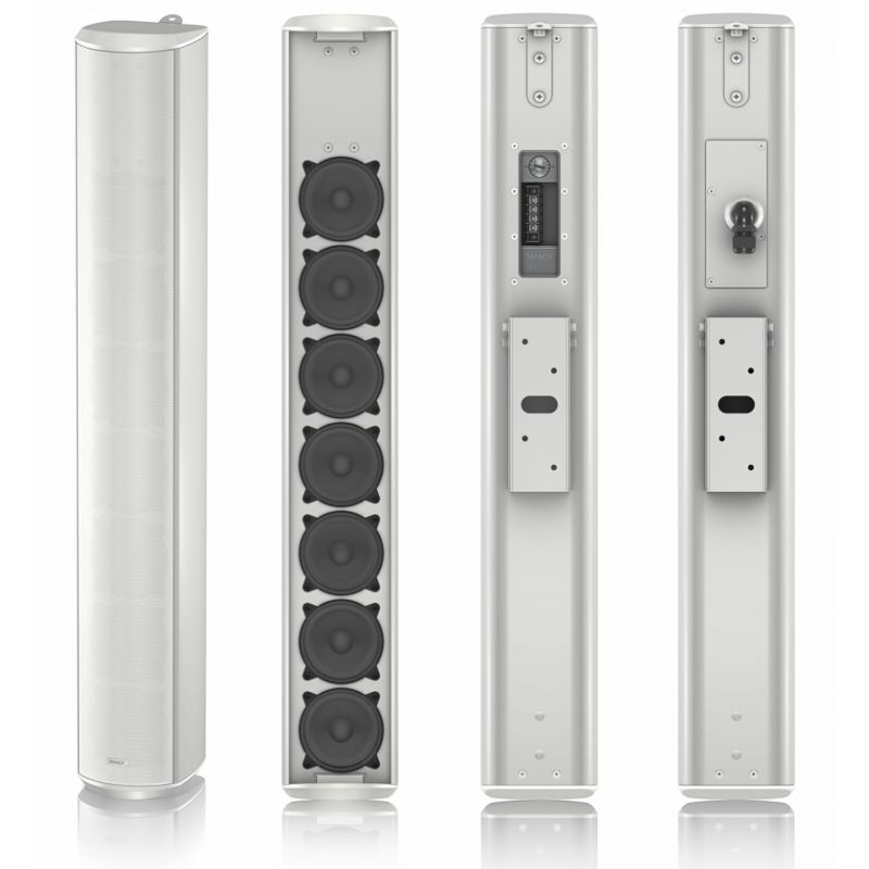 Во вторых, акустические колонны имеют широкую диаграму направленности в горизонтальной плоскости, что позволяет равномерно озвучивать помещения большого объёма меньшим количеством колонок.